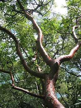 De fuste regular, aunque presenta excepciones como grietas o ranuras, suele alcanzar los 6 metros de altura y 80 centimetros de diametro aproximadamente. Tiene forma cilíndrica, con una corteza con apariencia rugosa color grisáceo o cenizo. Al provocar una incisión en su corteza, brota un líquido (resina) con el aroma característico de este árbol .